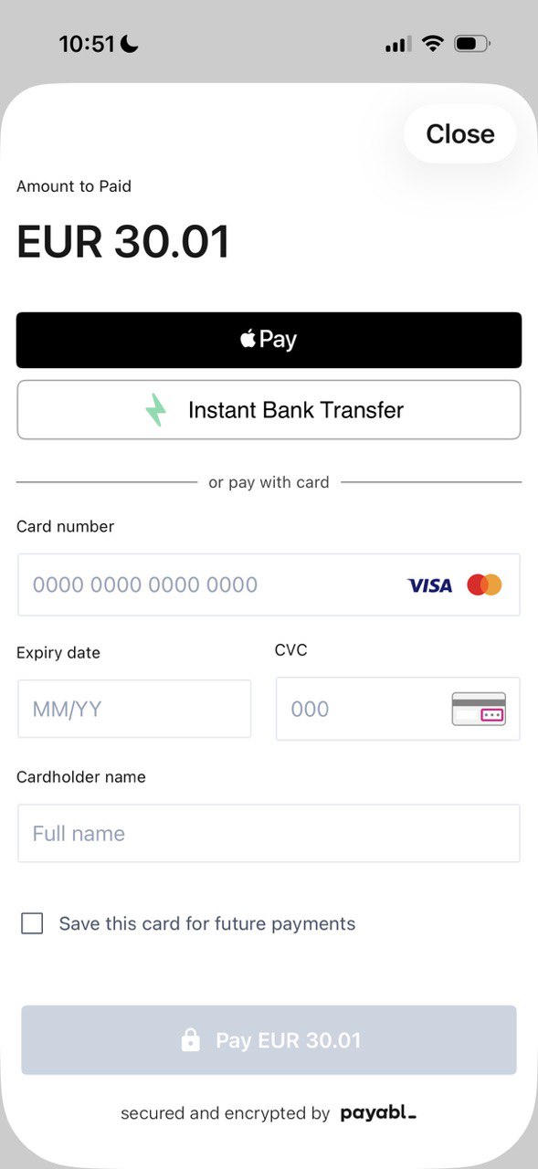 Hosted Checkout Page is a comprehensive, all-in-one solution designed to streamline the checkout process. By consolidating Apple Pay, instant bank transfers, and card payments into a single, intuitive interface, it provides a frictionless transaction experience that drives higher conversion rates.