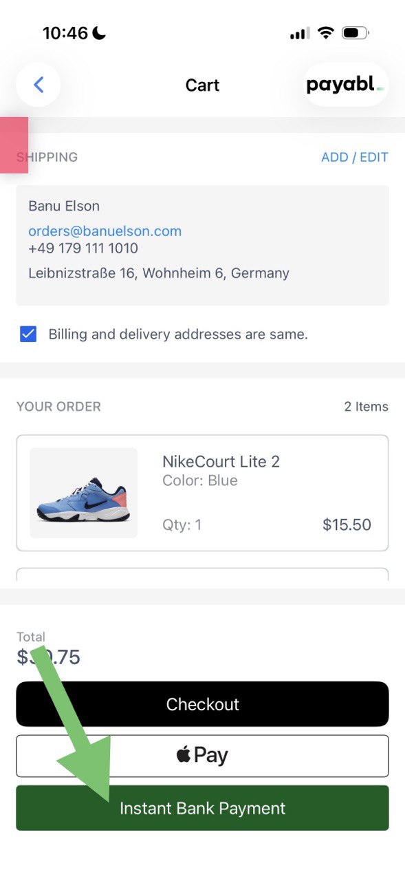 This section covers the integration of payabl. Instant Bank Transfer. This feature redirects users to their banking app or browser and returns them to your app via a deep link.