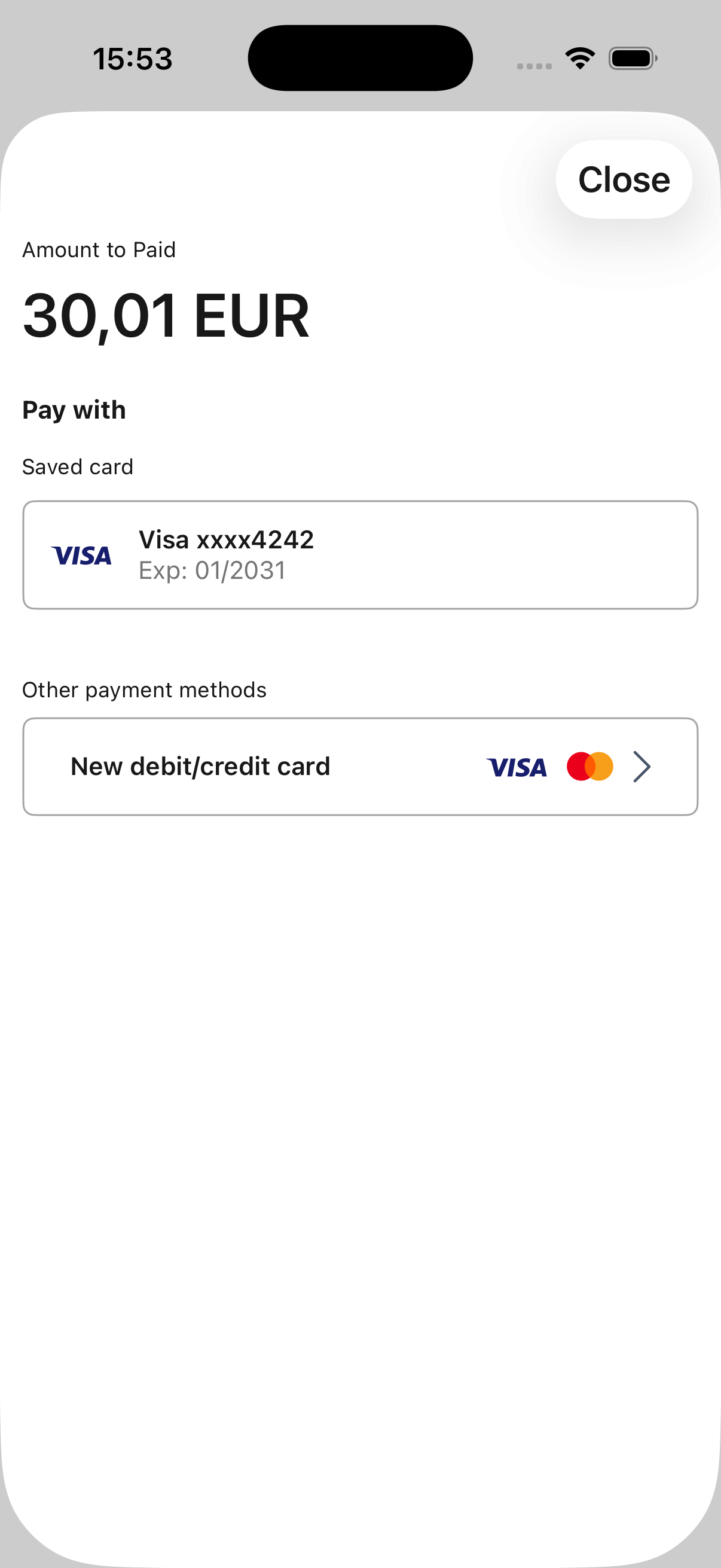 | VISA | 4149011500000147 | PBLPaymentResult.Completed | Successful authorization |
